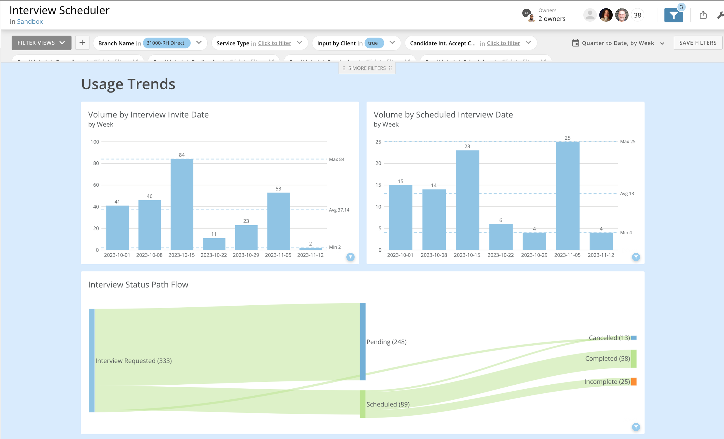 Including the designs for the Client, I was also the only designer that owned the entire email experience. I created the email templates for the client, candidate and recruiter experience. In total I delivered over 124 high fidelity designs, conducted 6 interviews and created 9 prototypes for user testing and training. We started the user interviews on Oct 24, and I finished all the designs for the client experience and email journey’s for all on Dec 16. It was an incredibly fast turn around and I am glad we were able to successfully launch the interview scheduler, I look forward to expanding the usage to more of our clients, candidates and recruiters.